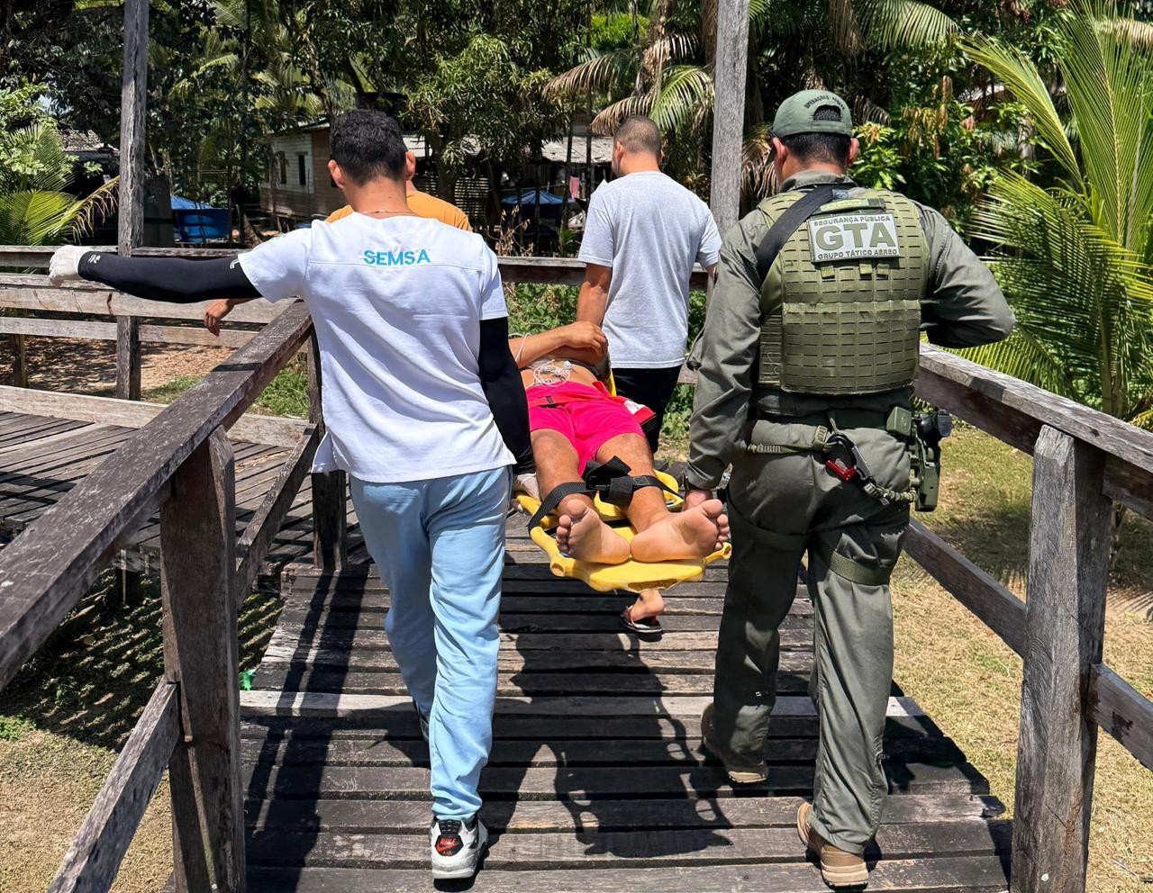 Um homem de 37 anos foi resgatado de helicóptero pelo Grupo Tático Aéreo (GTA) nesta quinta-feira (30) após ser atingido por um tronco de árvore enquanto trabalhava em uma área de mata na comunidade Vila Progresso, no arquipélago do Bailique.